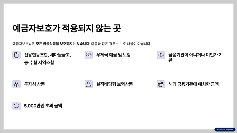 ❌ 보호되지 않는 금융기관 및 상품: