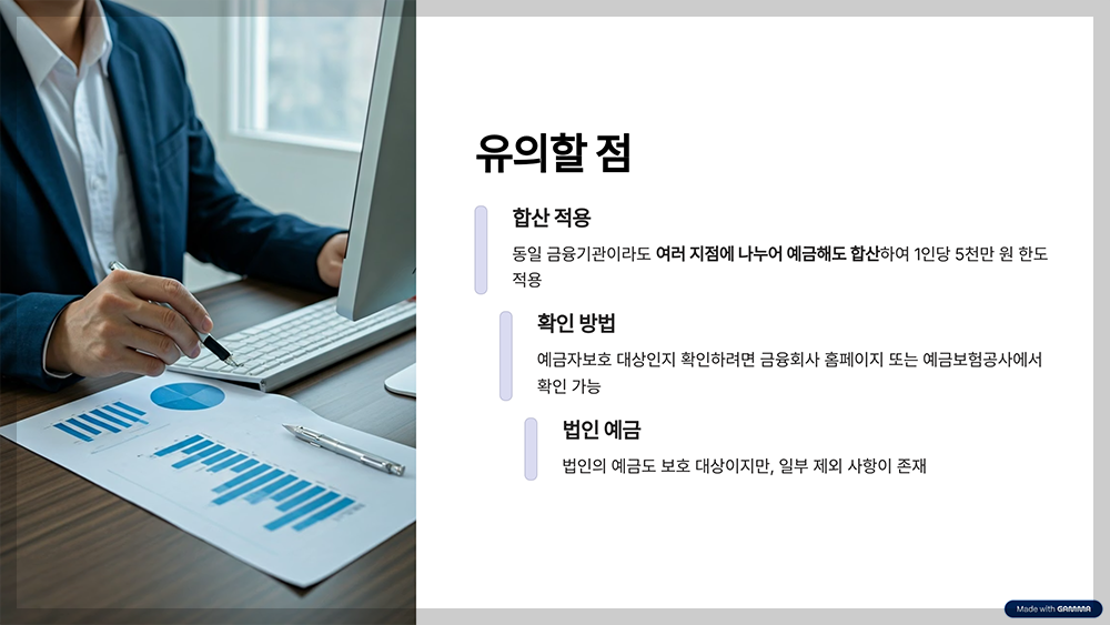 - 법인의 예금도 보호 대상이지만, 일부 제외 사항이 존재