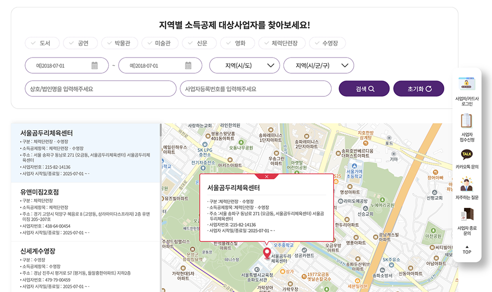 A. 문화비 소득공제 체육시설 검색 사이트에서 확인 가능합니다.