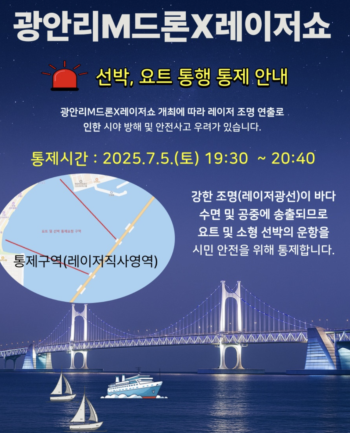 드론쇼 X 레이저쇼 특별공연 선박, 요트 통행 통제