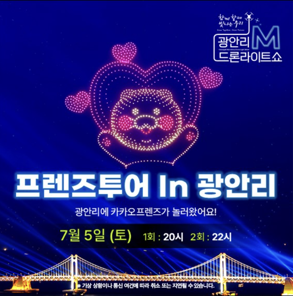 | 7월 5일 | 프렌즈 투어 in 광안리 | 드론+레이저쇼 개막공연 |