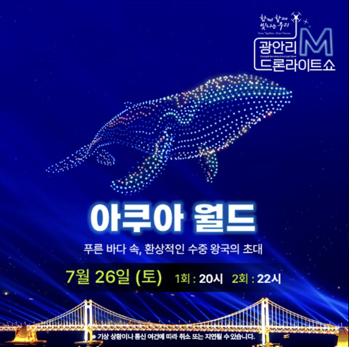 올여름 부산여행을 계획 중이시라면, 단 한 번뿐인 밤의 쇼를 절대 놓치지 마세요. 매주 토요일 밤, 광안리 해변 하늘에서 1천 대의 드론과 레이저가 펼치는 마법 같은 공연! 입장료는 무료지만 명당자리는 선착순입니다. 지금 일정을 꼭 확인해두세요.