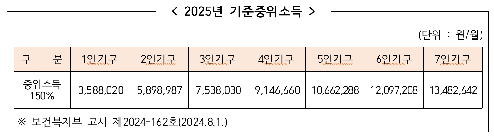 | 소득 | 기준 중위소득 150% 이하 |