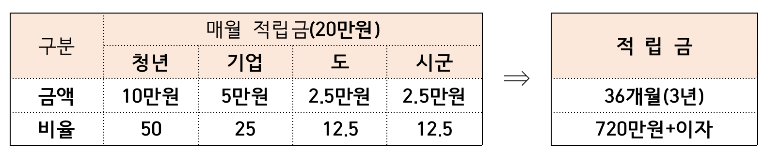 매달 10만 원을 본인이 적금하면, 기업과 지자체에서 각 5만 원을 매칭해 총 20만 원이 적립됩니다.