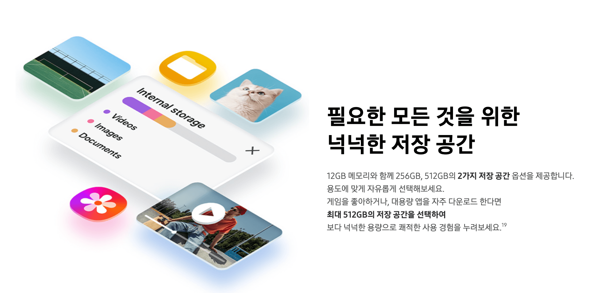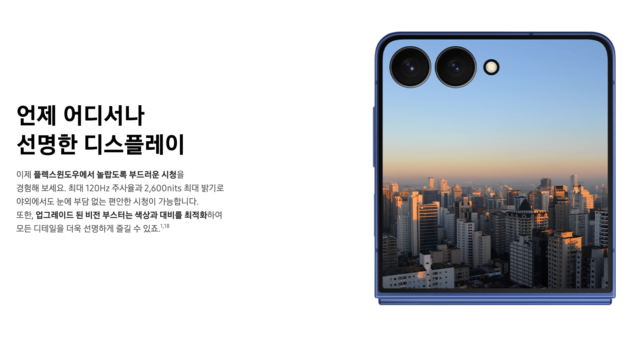 | 갤럭시 Z 플립7 | - 13.7mm 두께 - 4,300mAh 배터리 - 삼성 덱스 지원 - 나우 바 & 나우 브리프 - 맞춤형 커버 스크린 정보 제공 |
